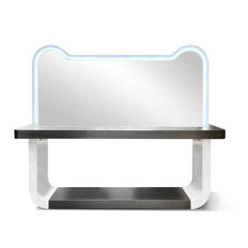 Modern Design Commercial Furniture Popular Hair Cutting Mirror for Barber Shops with LED Light Stainless Steel Tabletop 1063C